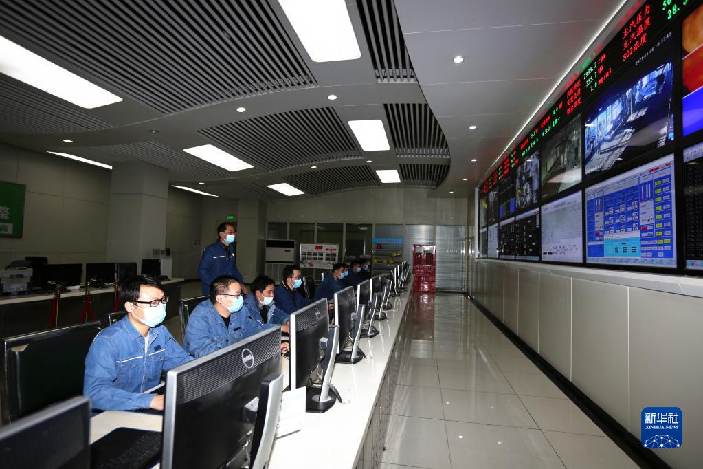 11月8日,在皖能合肥发电有限公司,工作人员通过大屏幕监控发电运行的各个环节。