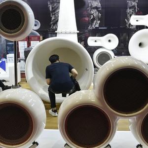 11月6日,参会者在第四届进博会展馆里的意大利PEQUOD公司展位拍摄音响设备。PEQUOD公司首次参展进博会。