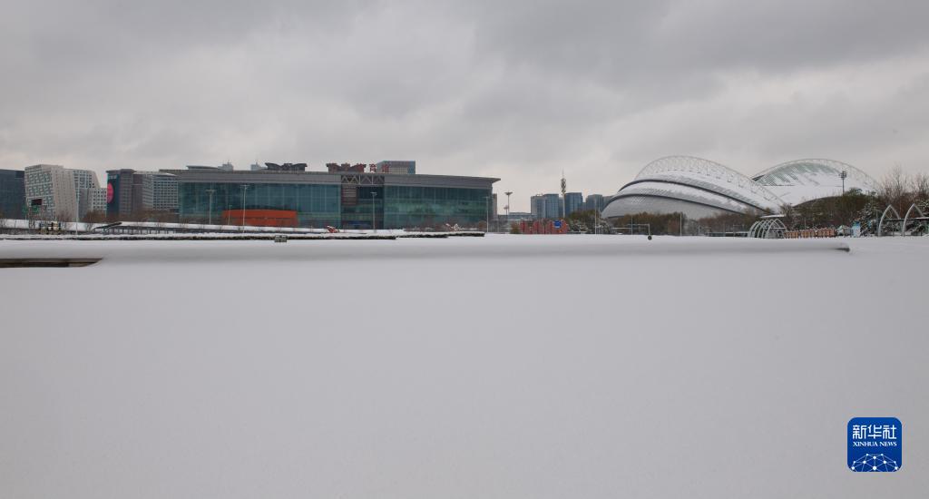 11月9日在沈阳市浑南区拍摄的被积雪覆盖的中国印广场。