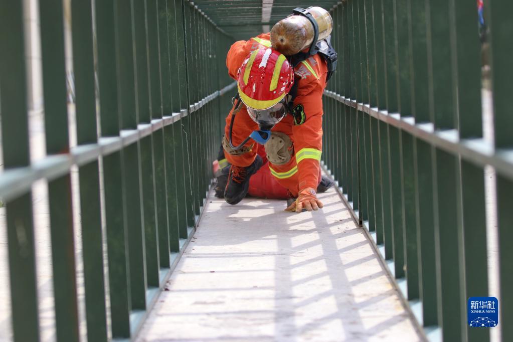 11月9日,在福建厦门海沧消防培训基地,消防员进行消防技能展示。