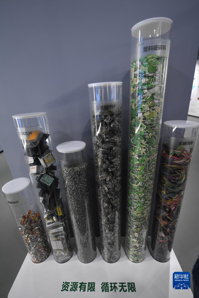 这是在湖州市吴兴区东林镇一家机动车回收拆解企业拍摄的拆解车辆得到的可循环利用的材料(11月9日摄)。