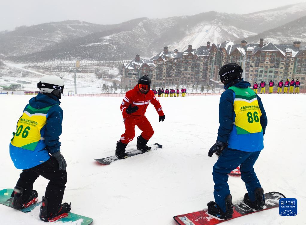 11月9日,任鑫在太舞滑雪场给学员授课(受访者提供)。