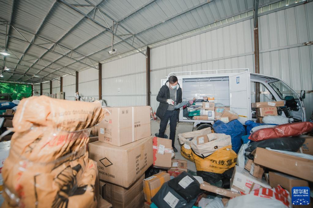 11月10日,在浙江省宁波市江北区的圆通速递宁波分拨中心,快递员准备将快递装车派送。