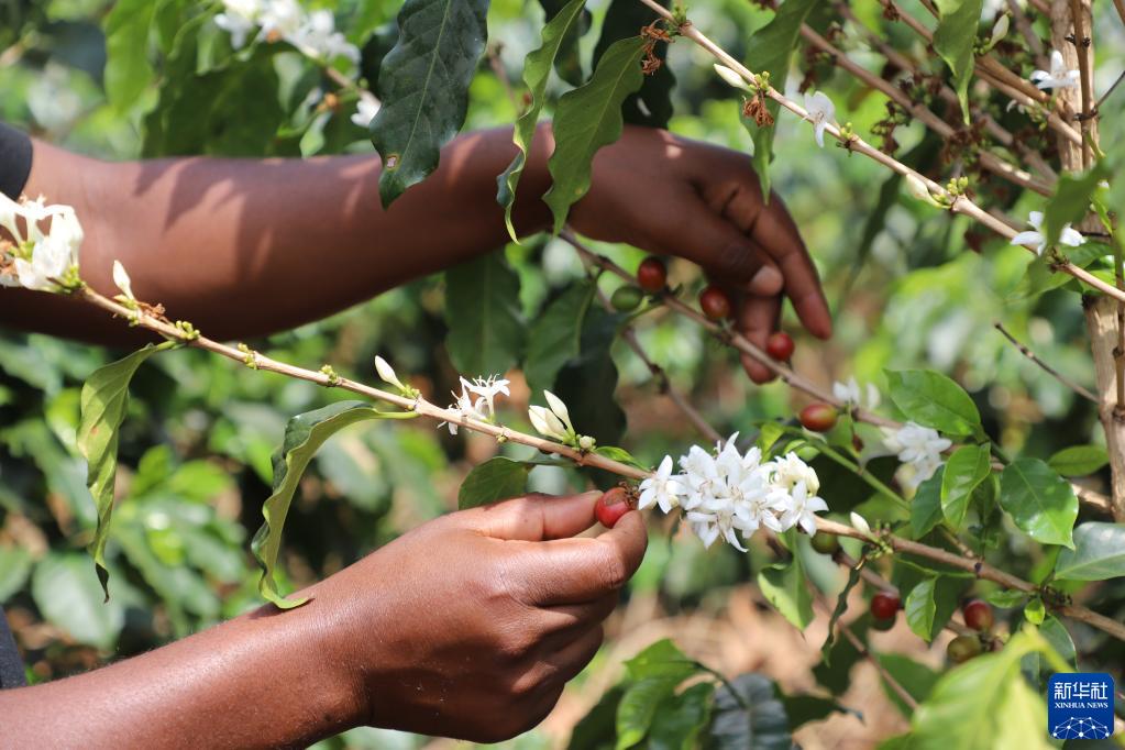 11月5日,工作人员在坦桑尼亚莫希的咖啡种植园采摘咖啡豆。