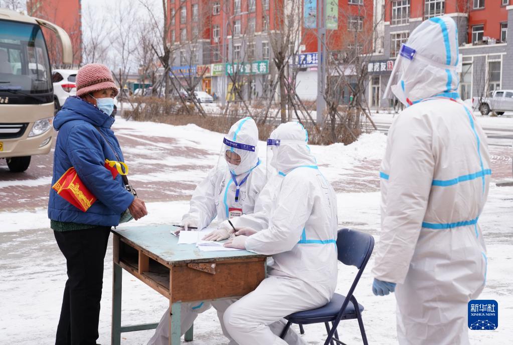 近日,黑龙江省黑河市出现大幅降温天气,防疫人员在寒潮中坚守岗位,筑牢疫情防控安全网。
