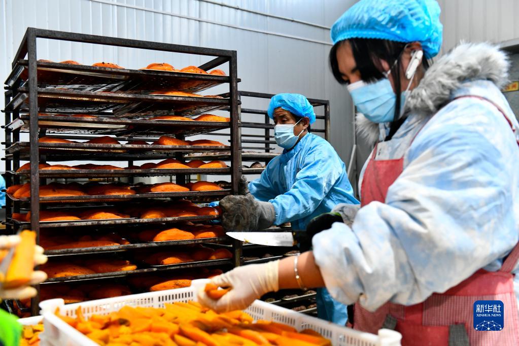 11月10日,在夏津县后赵庄红薯农民专业合作社,村民在加工烤制好的蜜薯。