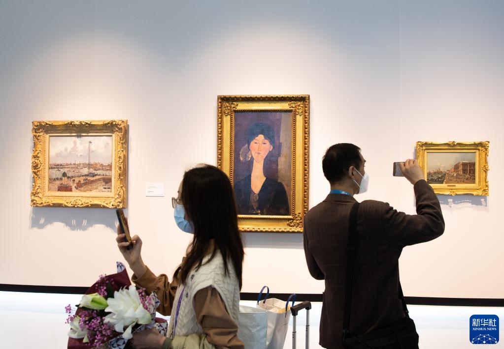 11月7日,观众在第四届进博会服务贸易展区佳士得展位参观拍摄。第四届进博会在服务贸易展区首设文物艺术品专区。新华社记者 邬惠我 摄