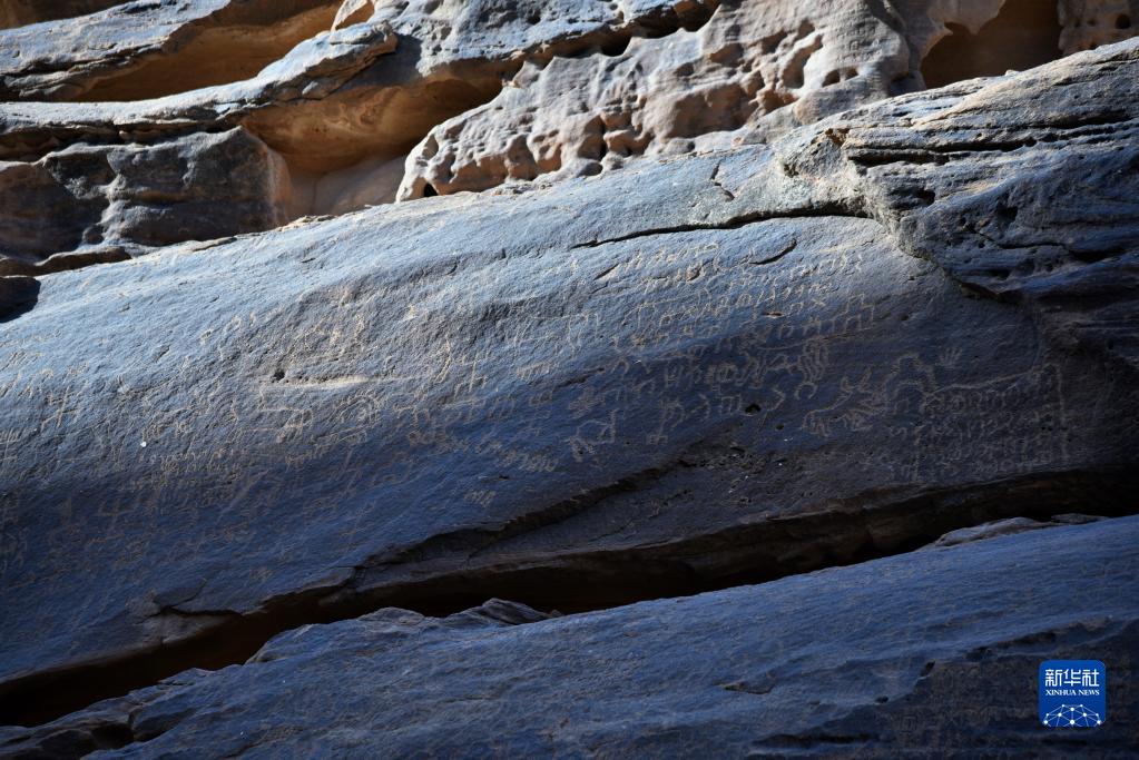 这是11月5日在沙特阿拉伯古城欧拉拍摄的岩画和古文字。