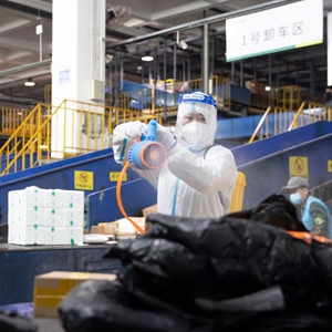 随着“双十一”网购高峰期到来,商品交易量骤增,哈尔滨市邮政快递企业对所有寄递邮件、快件实行“先消毒、后分派”制度,助力疫情防控。