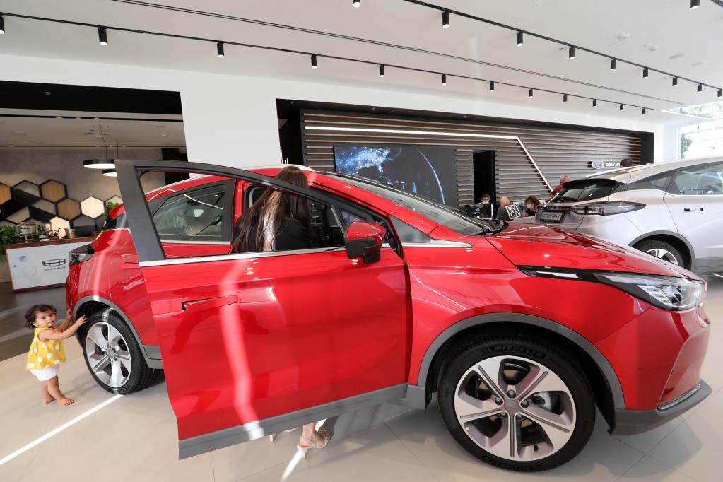 中国吉利汽车日前开始在以色列销售电动汽车,销售车型为几何C。