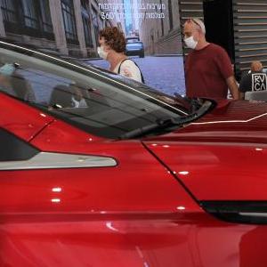 11月10日,人们在以色列特拉维夫的吉利汽车销售点看车。