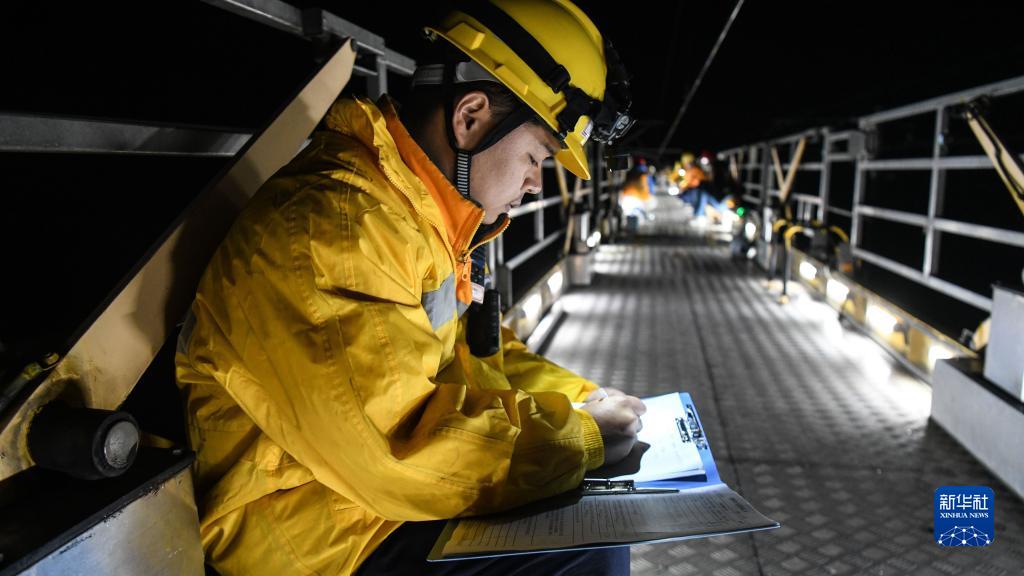 一名工人在检修平台记录作业进度(11月10日摄)。
