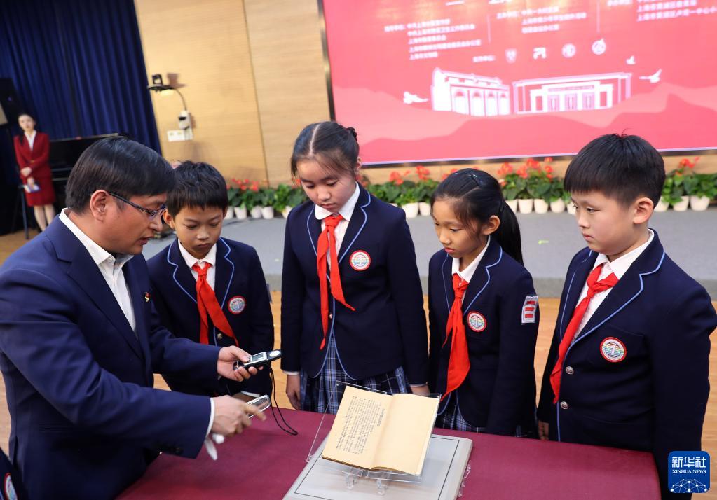 当日,中共一大纪念馆馆藏文物——以《摩登周报》作为伪装封面的《红旗周报》第五十五、五十六期合刊,来到上海市黄浦区卢湾一中心小学的主题班会课堂。学生们通过近距离观摩文物和聆听红色故事,感受革命者们在艰险复杂条件下进行斗争的智慧与勇气。