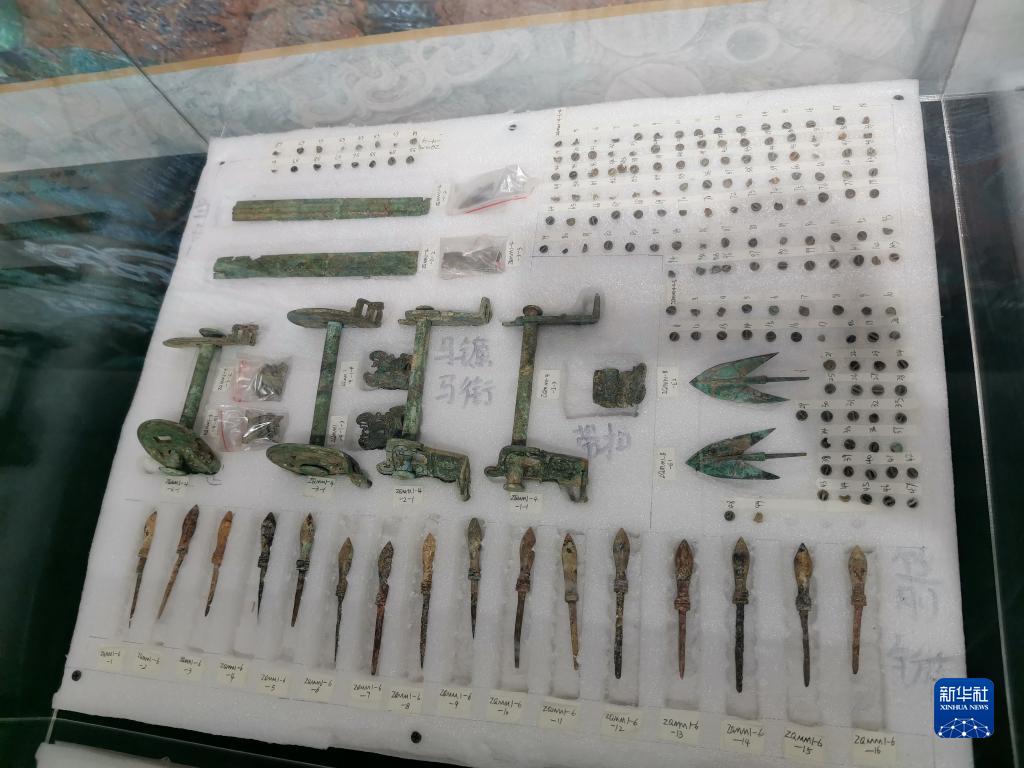 11月10日,部分器物在衢江区档案馆临时展出,包括在庙山尖土墩墓中出土的部分青铜车马器。新华社记者 冯源 摄