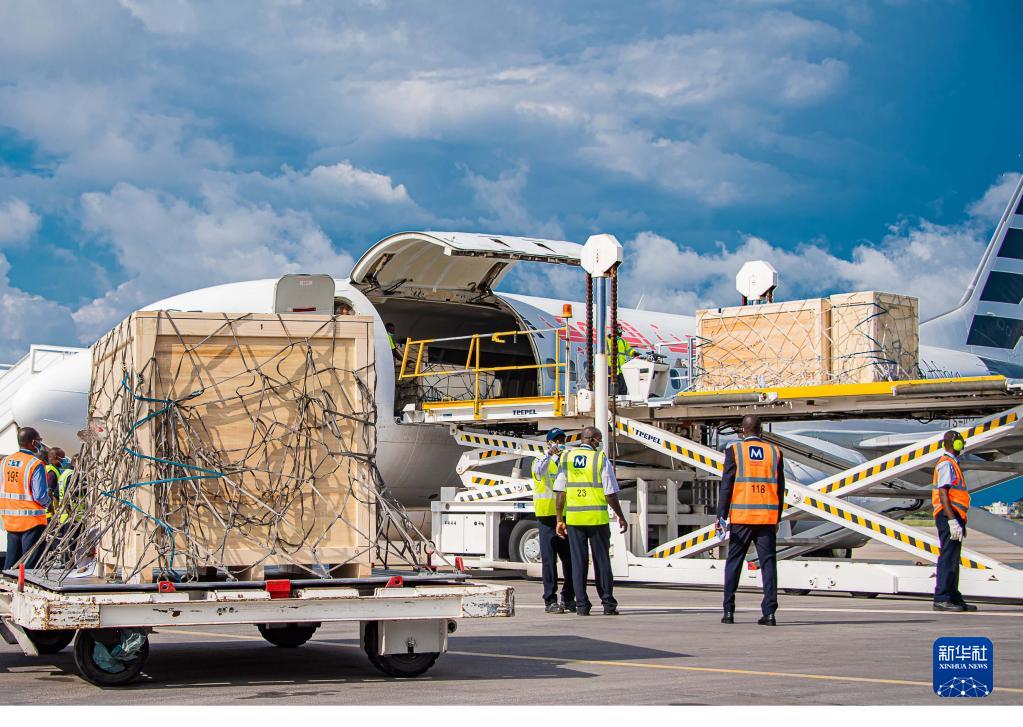 11月10日,工作人员在贝宁科托努机场卸载历史文物。
