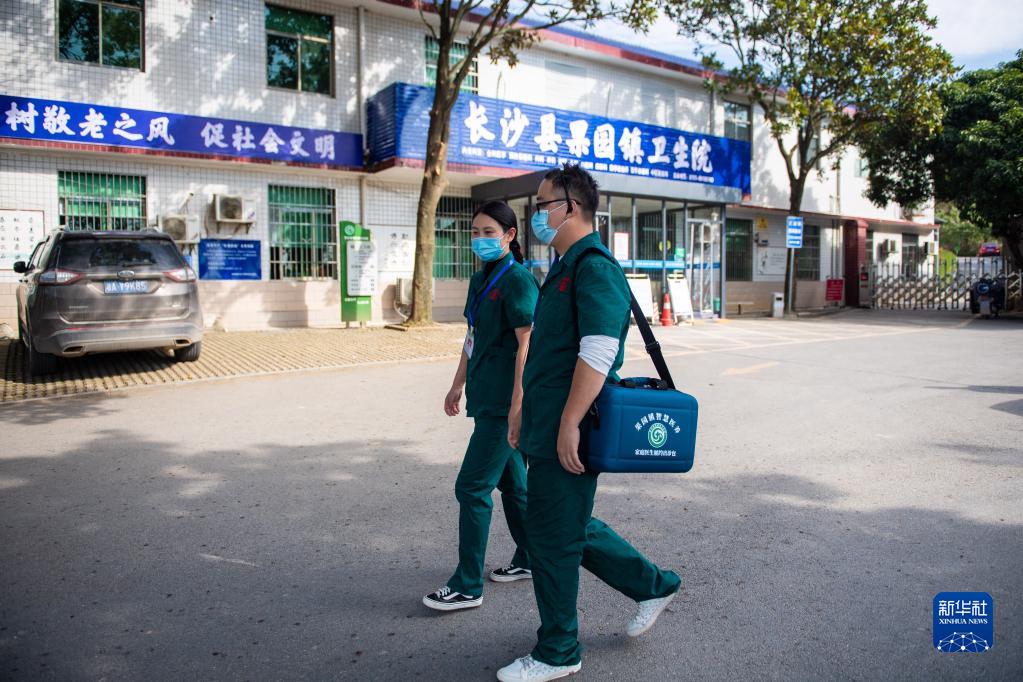 11月12日,在果园镇卫生院,医务人员彭永(右)、刘敏出诊。