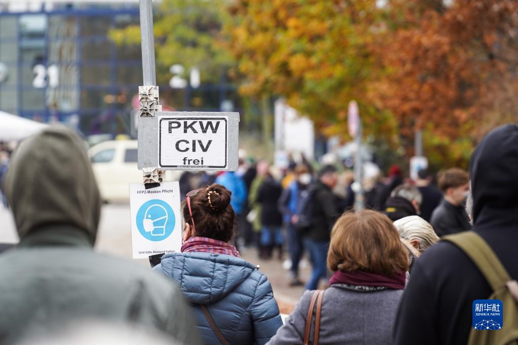 11月12日,人们在德国首都柏林一处新冠疫苗接种中心外排队等待。