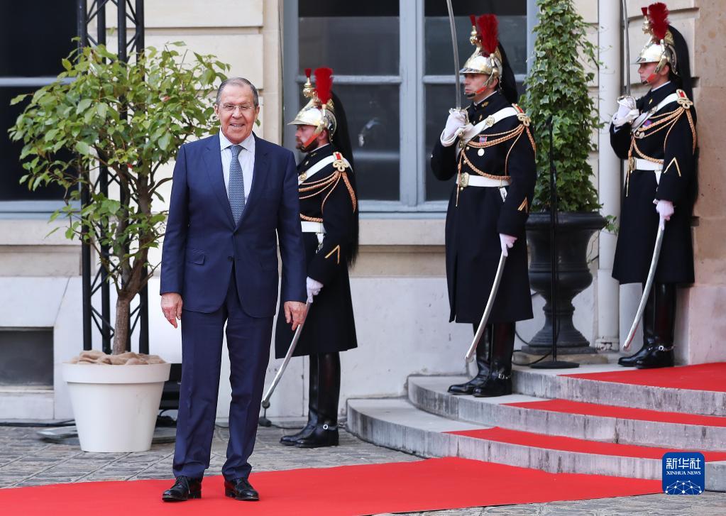 11月12日,俄罗斯外长拉夫罗夫(左一)抵达法国巴黎的峰会会场。