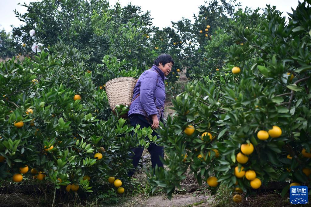 11月11日,永川区仙龙镇大牌坊村村民在背运柑橘。