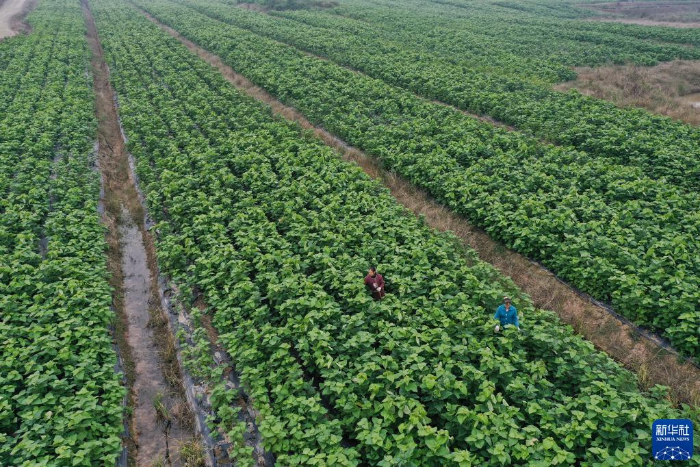 11月11日,永川区仙龙镇太平桥村村民在蚕桑种植基地劳作(无人机照片)。