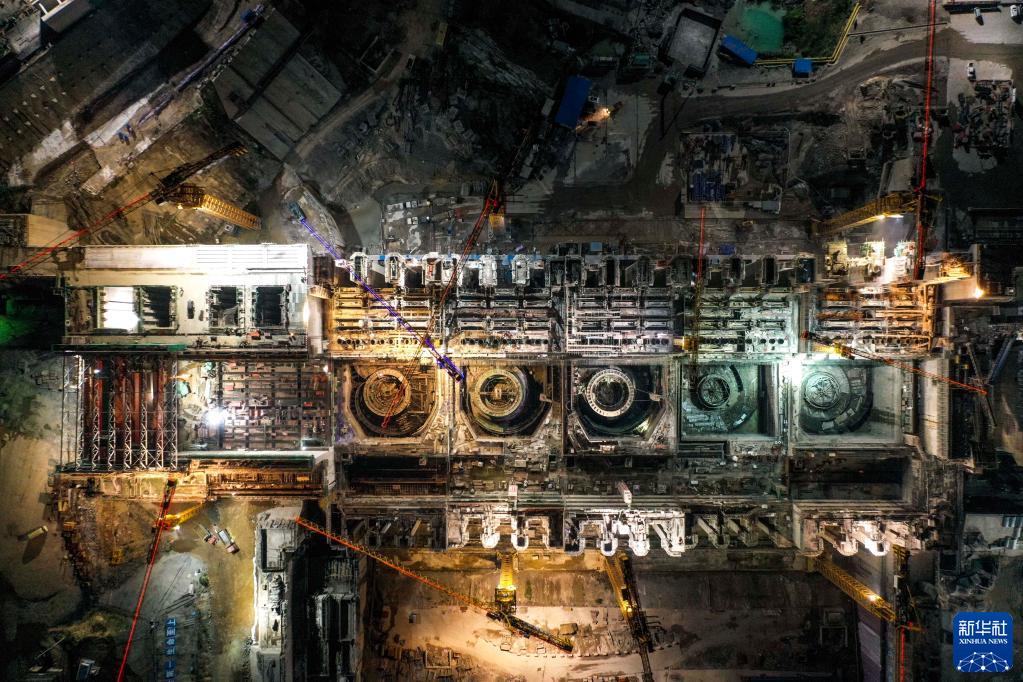 建设中的广西大藤峡水利枢纽右岸工程建设现场(无人机照片,11月12日摄)。新华社记者 曹祎铭 摄