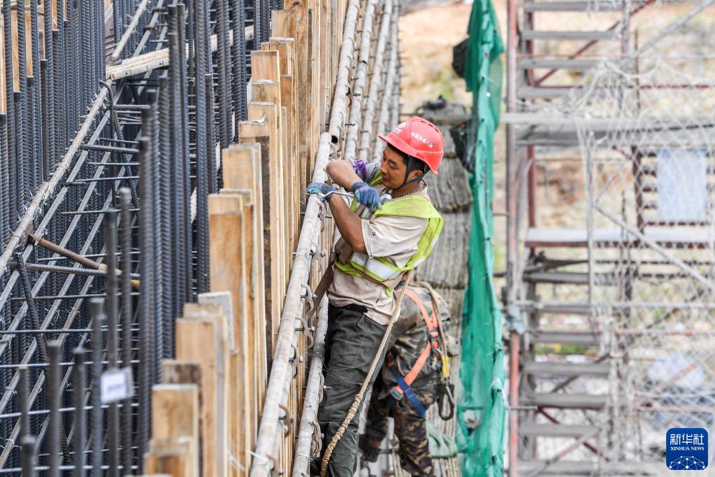 11月12日,工人在大藤峡水利枢纽右岸工程建设现场作业。新华社记者 曹祎铭 摄