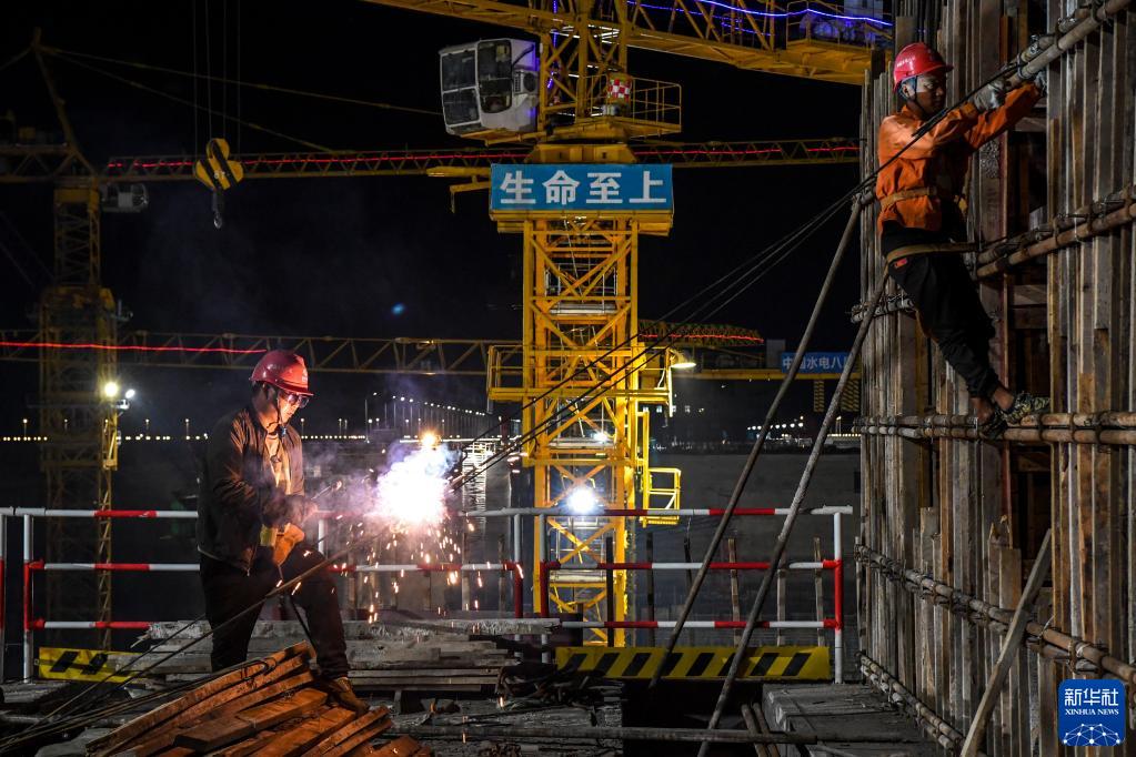 11月12日,工人在大藤峡水利枢纽右岸工程建设现场进行焊接作业。新华社记者 曹祎铭 摄