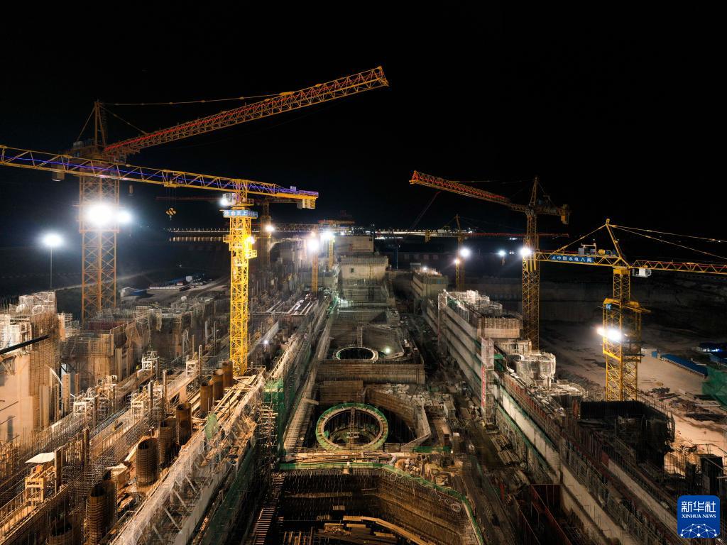 建设中的广西大藤峡水利枢纽右岸工程建设现场(无人机照片,11月12日摄)。新华社记者 曹祎铭 摄