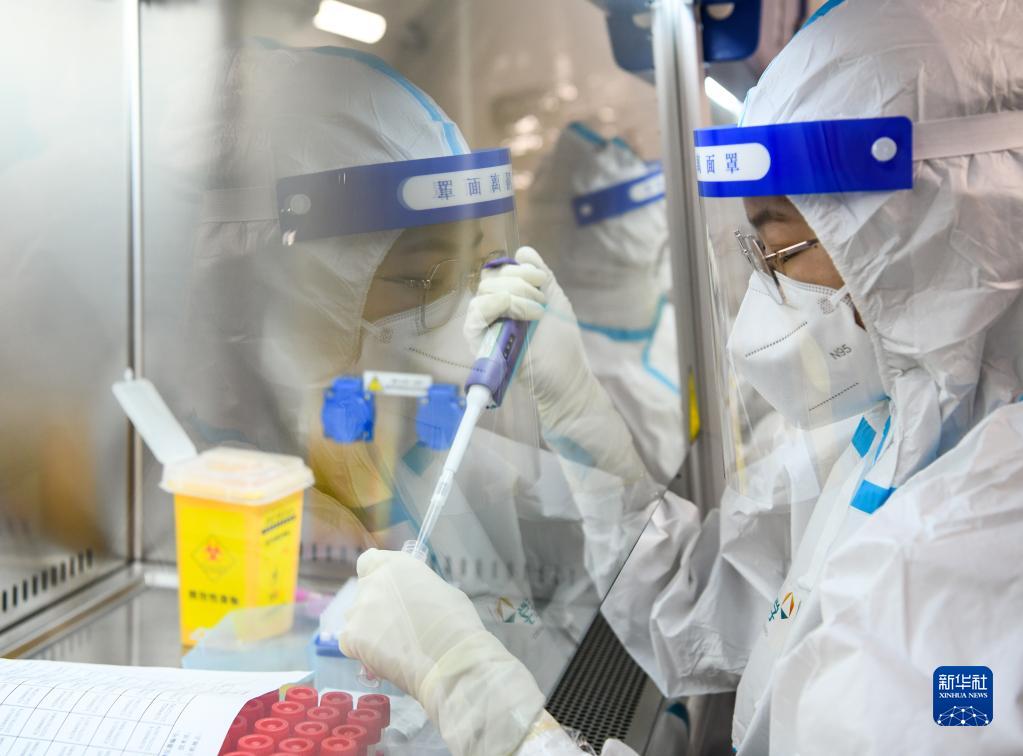 11月12日,工作人员在“猎鹰号”硬气膜实验室样本处理区作业。