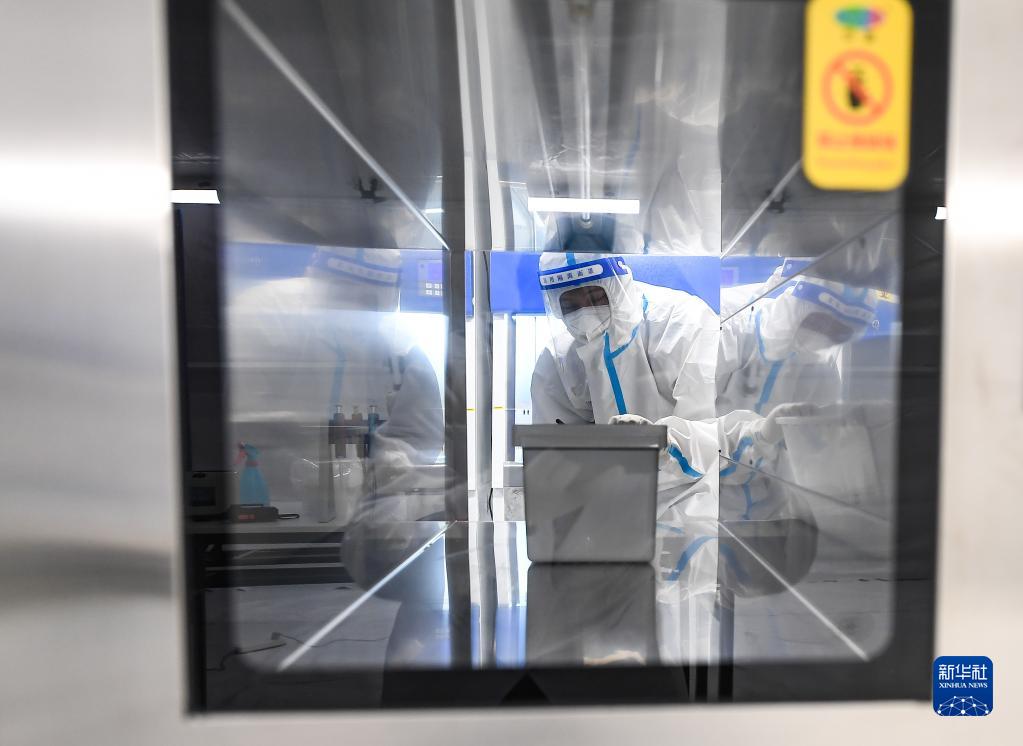 11月12日,工作人员在“猎鹰号”硬气膜实验室样本处理区作业。