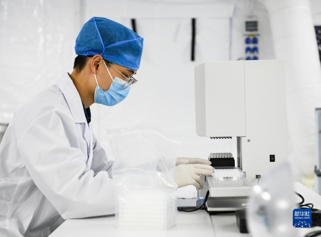 11月12日,工作人员在“猎鹰号”硬气膜实验室试剂准备区作业。