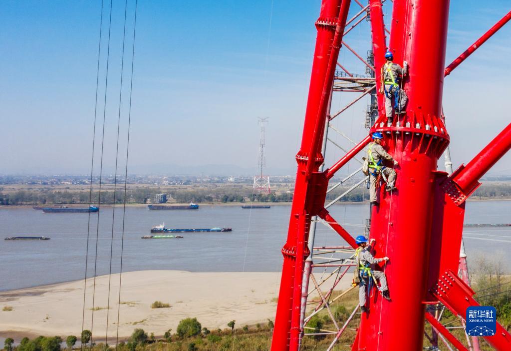在安徽芜湖的长江边,有一群电力“蜘蛛人”,他们每天攀爬、行走在百米高的跨越电塔上,争分夺秒,奋战在白鹤滩—江苏±800千伏特高压直流输电工程长江大跨越施工现场,确保重点工程进度。