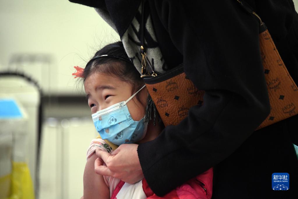 11月13日,在海淀区学院路街道新冠疫苗接种点,一名小朋友准备接种新冠疫苗。