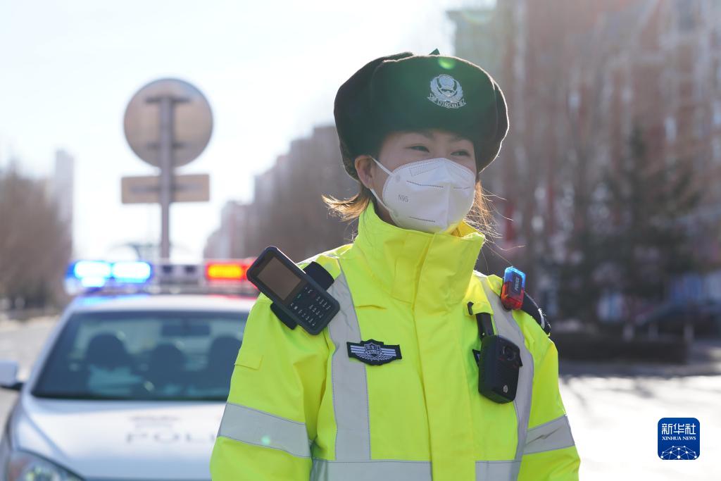 11月2日,在黑河市一街道路口,1990年出生的黑河市公安交通警察支队合作区大队内勤人员孙慧被临时抽调,在道路交通卡点值守。