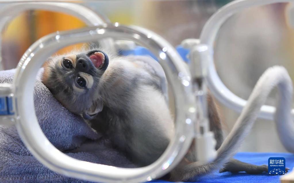 国内首例人工育幼濒危物种黑腿白臀叶猴亮相广州