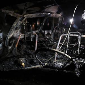 这是11月13日在阿富汗首都喀布尔爆炸现场拍摄的受损车辆。