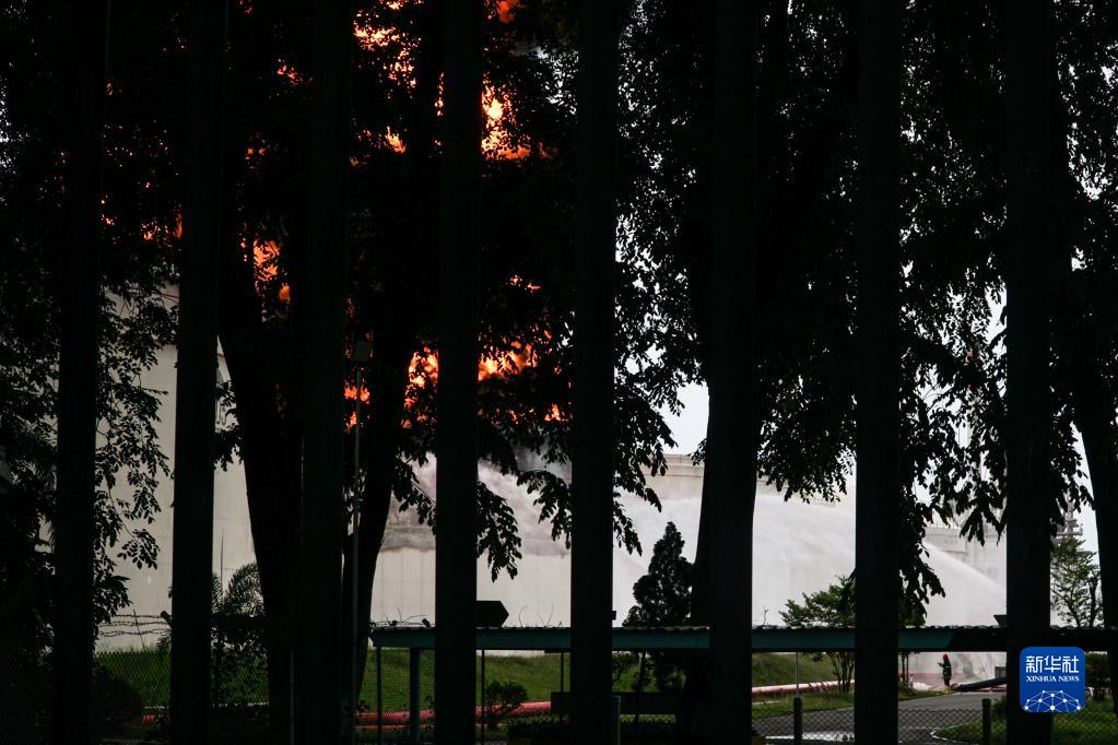 11月14日,消防员在印度尼西亚中爪哇省芝拉扎发生火灾的炼油厂灭火。