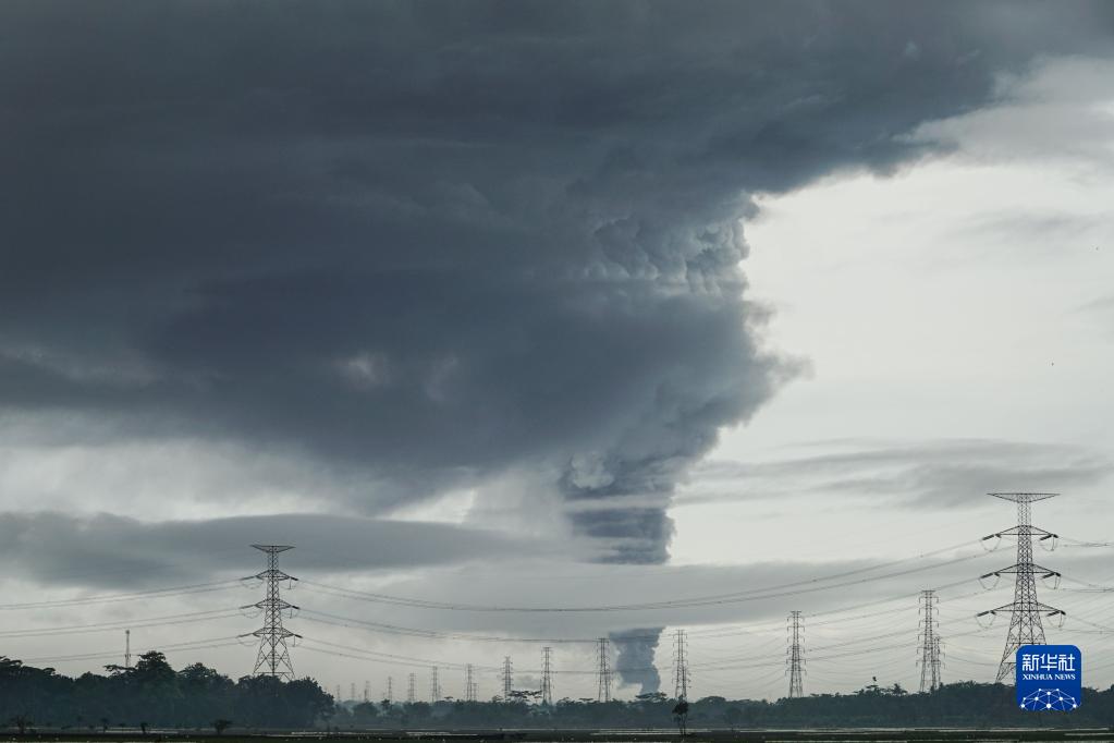 11月14日,在印度尼西亚中爪哇省芝拉扎,发生火灾的炼油厂冒起浓烟。