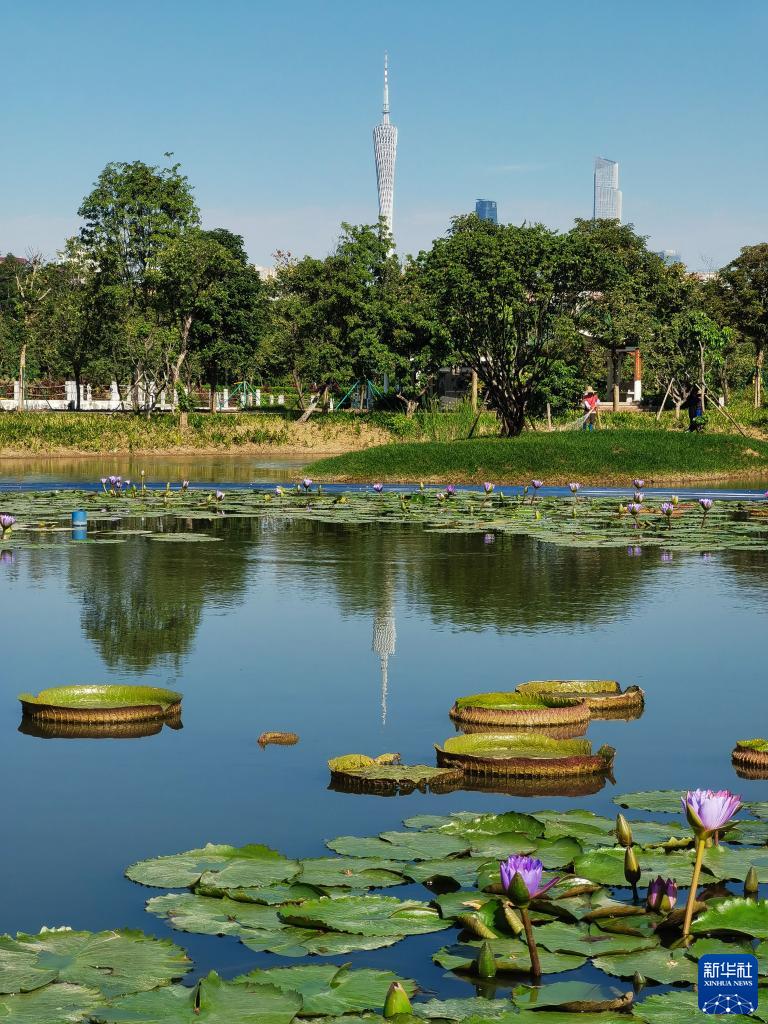 近日,受南下冷空气影响,广州市区天蓝如洗,市民纷纷走出家门,感受城市美丽景色。