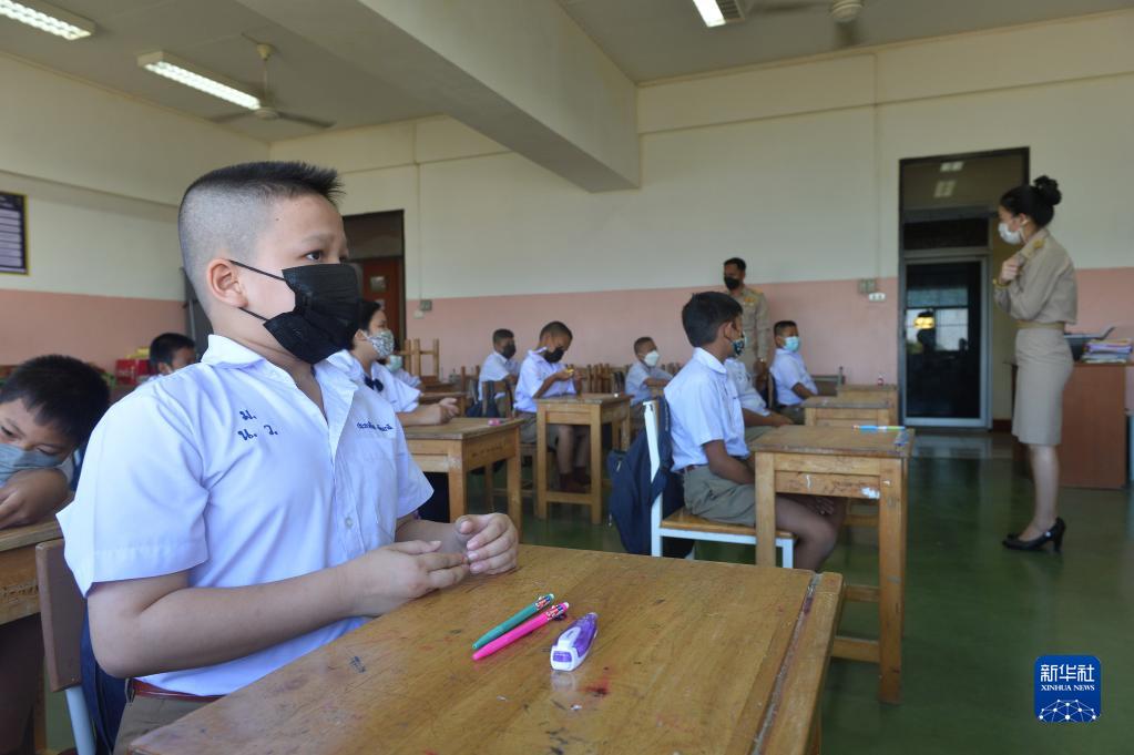 泰国此前因新冠疫情停课的学校于11月15日起开始复课,但仍须严格遵守相关防疫措施。新华社发(拉亨摄)
