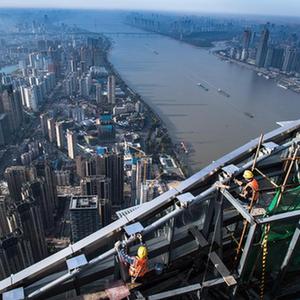 在武汉绿地中心项目建设现场近500米高的“云端”,近百名中建三局二公司的工人,伴着脚下的长江波涛,稳步推进工程建设,仿佛演奏着“交响曲”。这些建设者中有不少参与过武汉火神山、雷神山医院的建设。