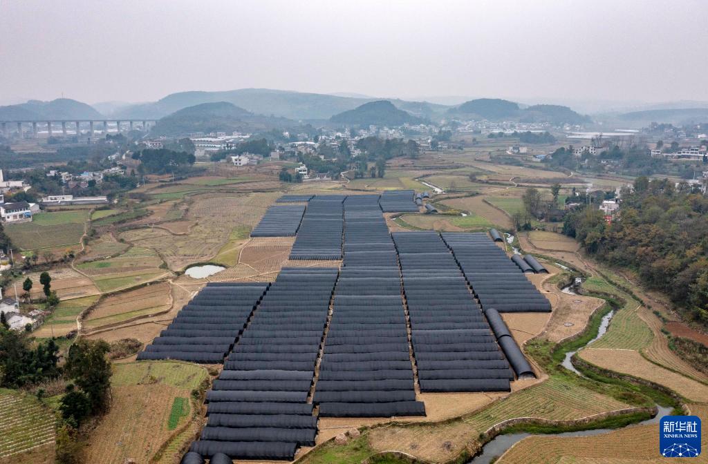 11月15日拍摄的黔西市杜鹃街道金钟社区羊肚菌种植基地,这个基地是在秋收后的水稻田里搭建的。