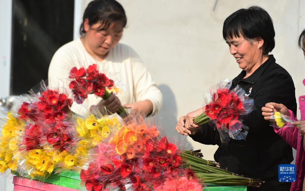 初冬时节,河北省献县十五级乡的大棚花卉基地中鲜花绽放,农民忙着管护、采摘、整理、外运。通过发展大棚花卉产业,当地实现了花卉夏秋供应向全年供应的转变,非洲菊、玫瑰等畅销周边大中城市,成为当地农民就业增收的特色产业。