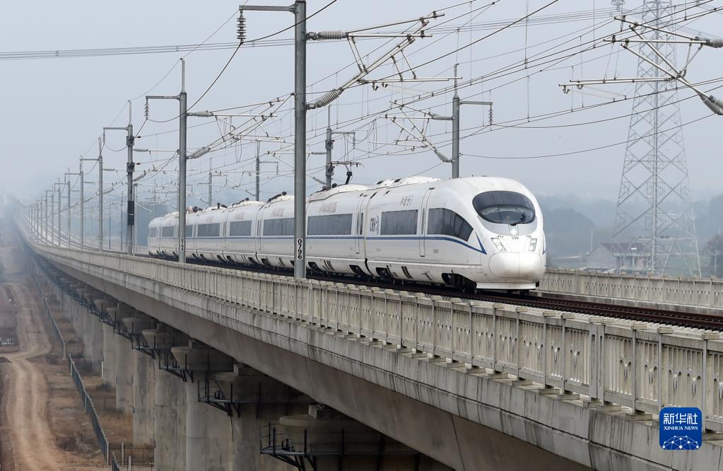 11月19日,运行试验列车行驶在安九高铁安庆至黄梅段。