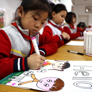 “世界问候日”即将到来,各地开展丰富多彩的主题活动,学生们通过不同的方式表达祝福,传递温情。新华社发(初宝瑞摄)
