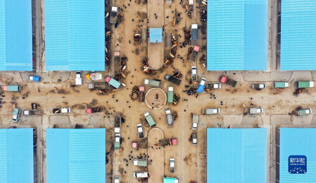 这是1月19日拍摄的宁夏固原市西吉县兴隆镇单家集活畜交易市场(无人机照片)。