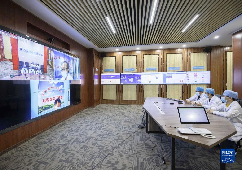 福建省泉州市第一医院医生在宁夏同心县人民医院通过远程会诊为同心县乡镇卫生院的医生提供指导(2020年9月18日摄)。