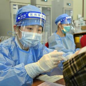 11月20日,在北京市海淀区北太平庄街道新冠疫苗接种点,医护人员(左一)在登记接种新冠疫苗加强针人员信息。