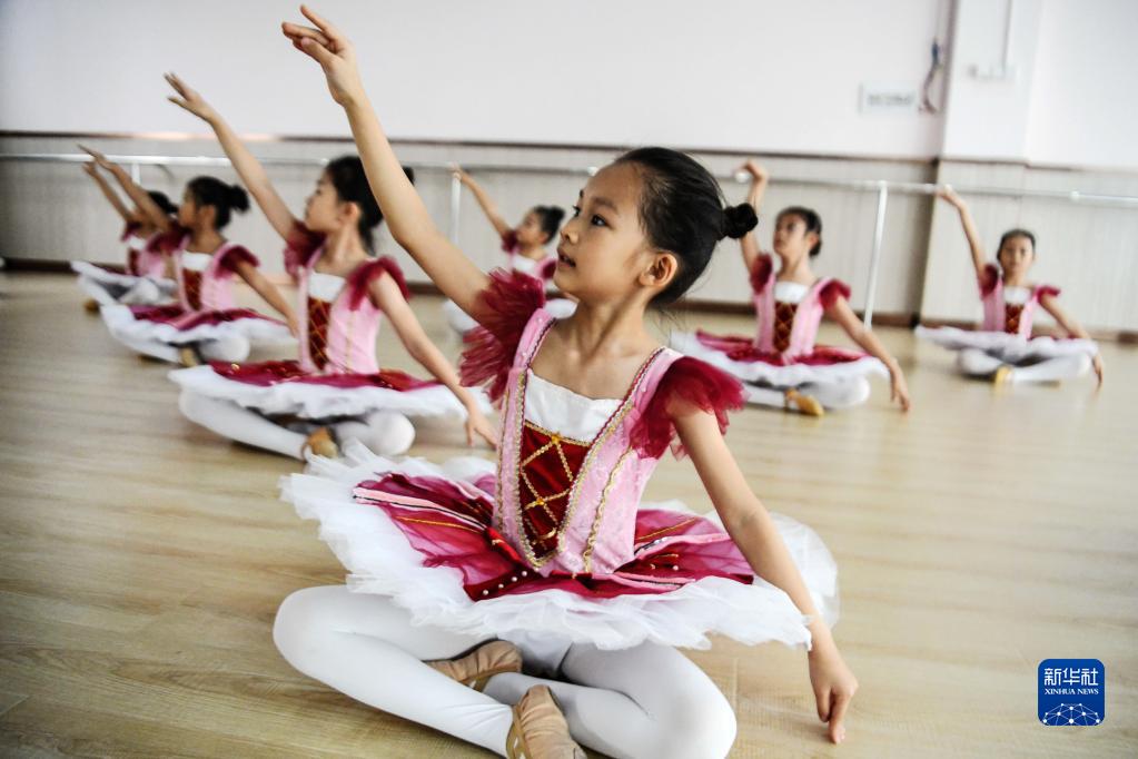 当日,在广西钦州市,不少小朋友在家长的带领下来到当地群众艺术馆,跟随老师学习芭蕾舞。她们在练功房挥洒汗水,练习基本功,追逐小小芭蕾梦。