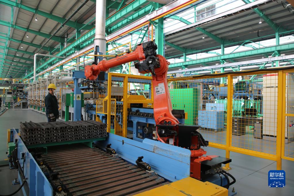 11月19日,永生重工有限公司工人在车间生产工程机械底盘部件。